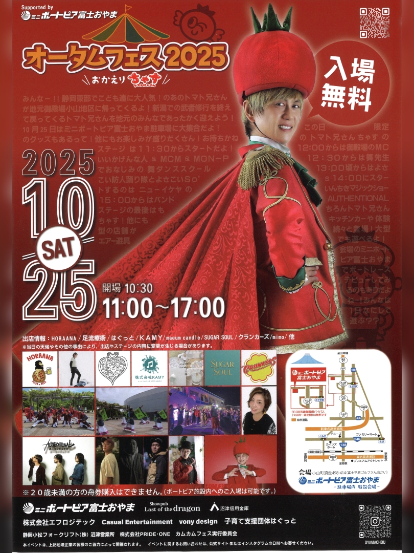 2025年10月25日(土)、「ミニボートピア富士おやま」にて、『オータムフェス2025 -おかえりトマト兄さん-』が開催されます。